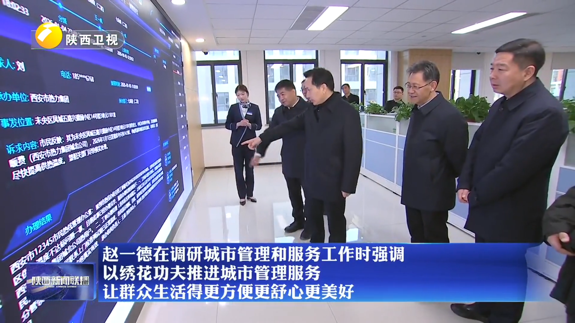 《陕西新闻联播》 赵一德在调研城市管理和服务工作时强调 以绣花功夫推进城市管理服务 让群众生活得更方便更舒心更美好